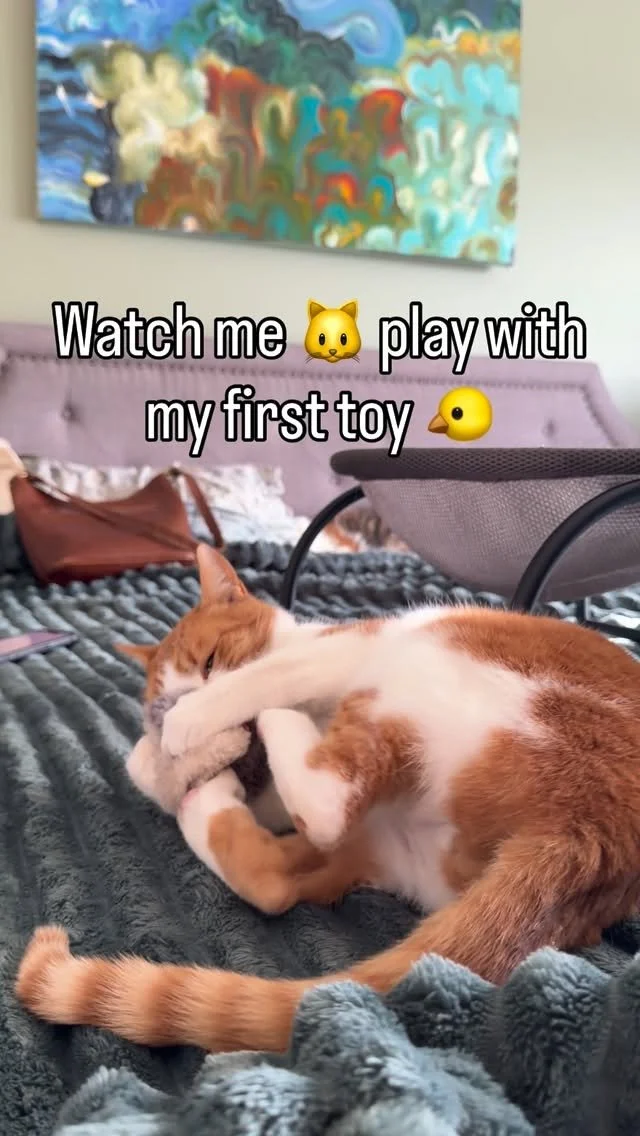 Now inside she darts around like she’s training for the Kitty Olympics, scales furniture like a parkour pro, and launching herself at toys with zero regard for physics or personal safety.