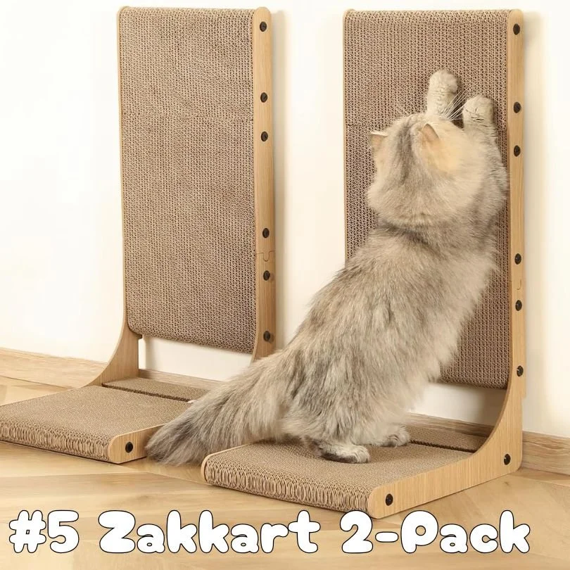 The Zakkart Vertical Cardboard Cat Scratcher provides a tall cardboard scratching panel designed specifically for this purpose.